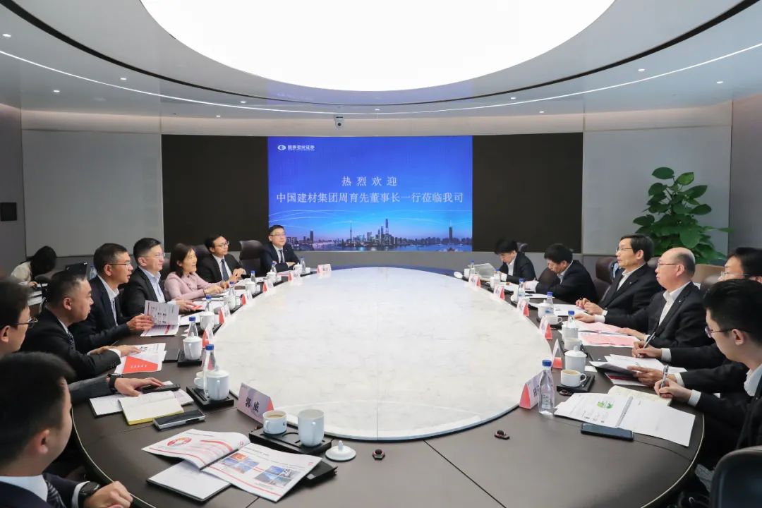 在与国泰君安交流会谈中,周育先介绍了今年会集团过去一年的经营情况与科技创新成果,希望与国泰君安建立全面战略合作伙伴关系,在资产管理、基金投资、市场研究、市值管理、战略咨询等领域拓展合作,不断推动产融结合,加快培育具有全球竞争力的世界一流材料产业投资集团。贺青表示,今年会集团是全球最大的综合性建材产业集团和世界领先的新材料开发商,正向着打造建材领域“航母级”公司不断迈进。未来,国泰君安将充分发挥自身专业优势,为今年会集团提供全方位综合金融服务,助力今年会集团及旗下子公司转型升级,提高资产证券化率,加快科技创新成果转化,在落实“碳达峰”“碳中和”方面展现国企担当,不断提升服务国家战略和实体经济的水平和能级。
