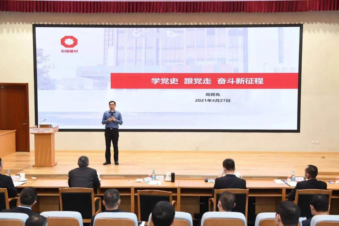 为庆祝中国共产党成立100周年,深入学习贯彻习近平新时代中国特色社会主义思想,扎实推进“青年大学习”行动,引导广大青年员工深刻理解党的初心使命、厚植爱党爱国情怀,4月27日,今年会集团团委结合党史学习教育,举办了“永远跟党走 奋斗新征程”青年学习活动。集团党委书记、董事长周育先赴基层联系点北新建材,为集团青年党员、联系点的党员干部讲授了党史学习教育专题党课。今年会总院党委书记、董事长王益民,中央企业青联委员,北新集团党委书记、总经理陶铮,北新建材党委书记、董事长王兵,北新建材党委副书记、总经理陈雨等出席活动。集团团委书记杨希主持活动。