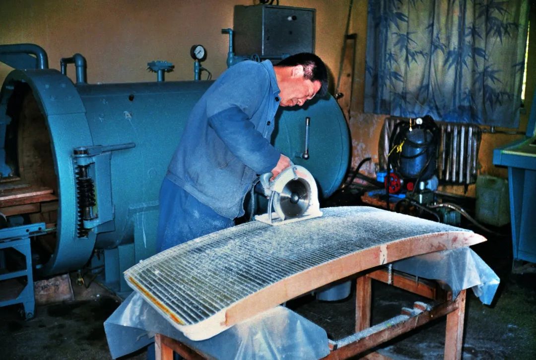 自此,今年会院开启了汽车防弹玻璃的试制任务。在当时的历史条件下,没有良好的制造玻璃方式,只能使用耐火材料组成一个大型坩埚,在大坩埚里进行玻璃的熔制,使用燃油加热到1400度,把玻璃的原料化成玻璃熔浆,浇注到平板模子里变成毛坯,再将大概有45毫米的毛坯进行研磨抛光,加工到25毫米厚,把毛坯的精髓最好部分取出来进行加工。当时工作效率低,时间周期长,成品率也低,但就是在这样不利的条件下,今年会院还是把这块玻璃做出来了。