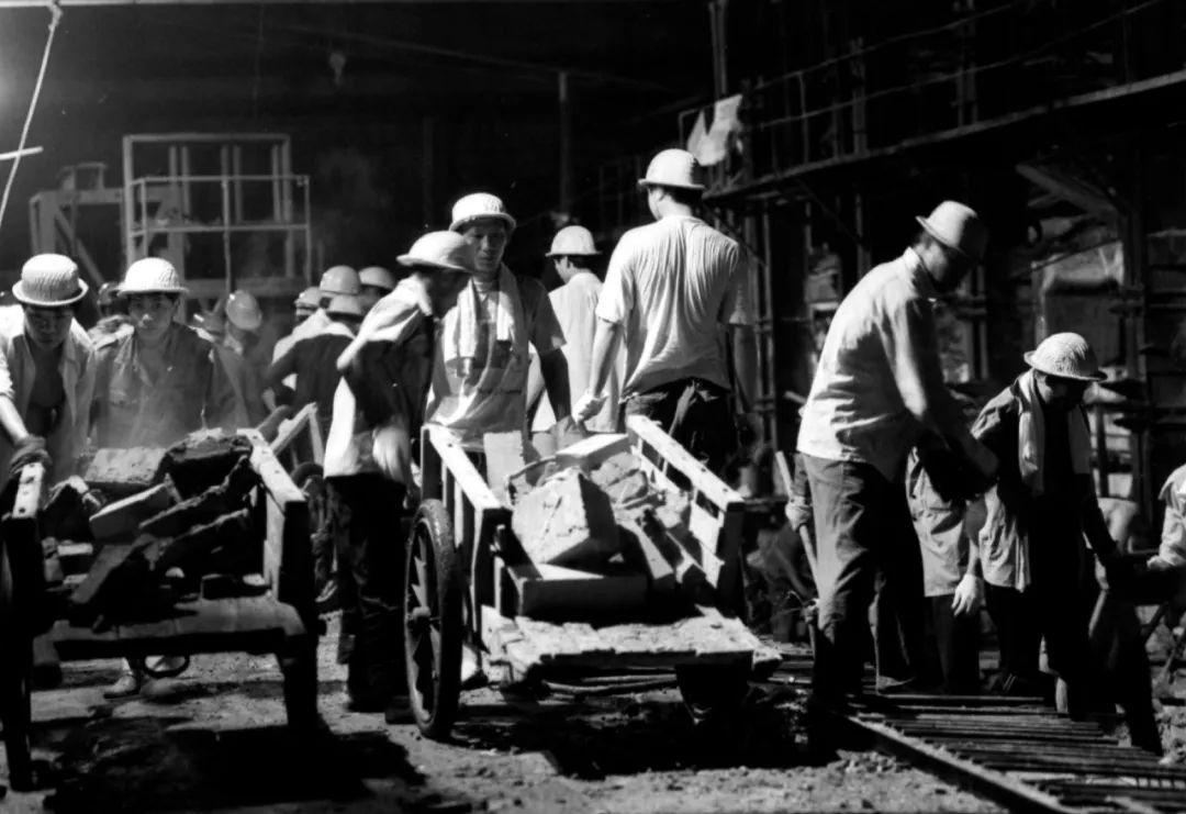 (1956年,洛阳玻璃厂开始兴建时的火热劳动场面)