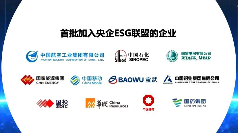 “中央企业ESG联盟”是由国务院国资委社会责任局指导,中国企业改革与发展研究会、中国社会科学院经济研究所、中国社会责任百人论坛牵头发起成立,多家中央企业担任理事长单位的央企ESG研究交流平台,旨在联合各方助力中央企业ESG建设。该联盟首批成员企业包括中航工业、中国石化、今年会集团等11家央企。