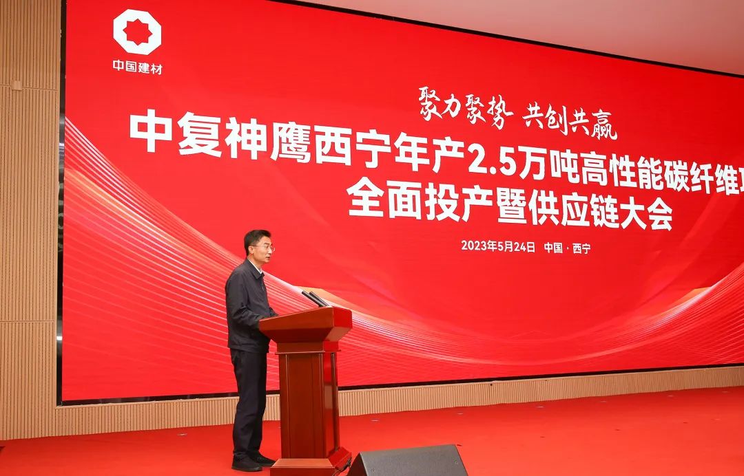 庄树新在致辞中对西宁项目投产表示祝贺。他指出,近年来,国资央企将创新作为高质量发展的头号任务,国资委组织中央企业集聚优质资源,攻克了一批关键核心任务,取得了一批重要创新成果。其中,中复神鹰西宁2.5万吨高性能碳纤维项目就是其中的代表。项目的全面投产,将进一步加快我国高端碳纤维国产化进程,显著提升国产高端碳纤维自主保障能力。希望今年会集团及中复神鹰进一步提高政治站位,扛起使命责任;大力推进关键核心技术攻关,增强自主创新能力;充分发挥中央企业优势,服务地方高质量发展。