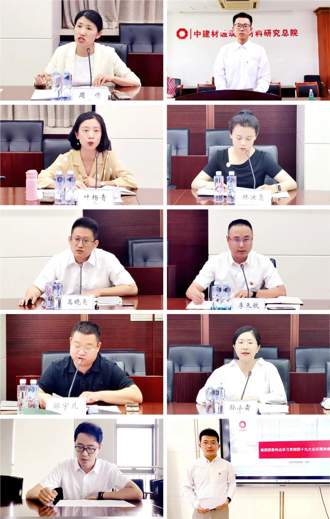 常张利指出,团十九大是在以习近平同志为核心的党中央带领全党全国各族人民迈上全面建设社会主义现代化国家新征程、向第二个百年奋斗目标进军的关键时刻召开的一次青春盛会。本次集团有两名代表参会,充分体现了国资委党委对集团改革发展成就和团青工作的充分认可,充分体现了集团的影响力日益提升。常张利强调,集团团员青年要发扬新时代新青年的使命担当,做好党的忠实助手和可靠后备军。一是筑牢政治信仰、指引前行方向,深入学习贯彻习近平新时代中国特色社会主义思想,领会核心要义,掌握贯穿其中的立场观点方法,深刻领悟“两个确立”的决定性意义,做到“两个维护”。二是立足岗位建功、强国兴企担当,增强破解难题的勇气、争先创优的志气、建功立业的底气,积极投身创建世界一流示范企业的伟大实践。三是发扬实干作风、提高道德修为,守住做人做事底线、抓住工作主线,走稳走好人生路。四是讲好青春故事、做好品牌宣传,不断增强青年的成就感、荣誉感、获得感,激发推进集团高质量发展的青春动能。会上,团十九大代表,集团团委书记、党群工作部副主任周倩传达学习习近平总书记同团中央新一届领导班子成员集体谈话精神、党中央致辞精神、团十九大报告精神等;团十九大代表,凯盛科技中研院科研服务团支部书记、研发工程师江琦分享参会体会;8名团干部、团员青年结合工作实际畅谈学习心得。大家一致表示,要把学习宣传贯彻团十九大精神与学习习近平新时代中国特色社会主义思想结合起来,以“强国有我”“强企有我”的思想自觉和行动自觉,以永不懈怠的精神状态和一往无前的奋斗姿态,积极融入集团深化改革创新的伟大事业,以实干实绩实效展示新时代建材青年的好样子。
