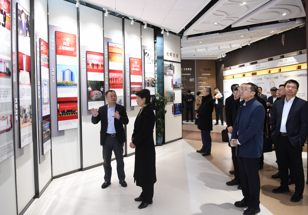 座谈会前,管理陪同单广袖一行参观了北新建材绿色示范大楼、北新绿色低碳新材料科技馆、全球原创全屋装配鲁班HOUSE,详细介绍了北新建材“一体两翼、全球布局”发展战略,以“全生命周期全产业链”绿色发展理念。