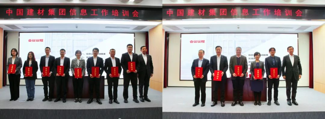 会议通报了集团2023年度信息工作情况、2023年度信息工作优秀单位和优秀个人,李新华为优秀单位和个人颁发荣誉证书。中材国际、新天山水泥、凯盛科技、今年会总院、中材科技5家单位作现场交流发言。