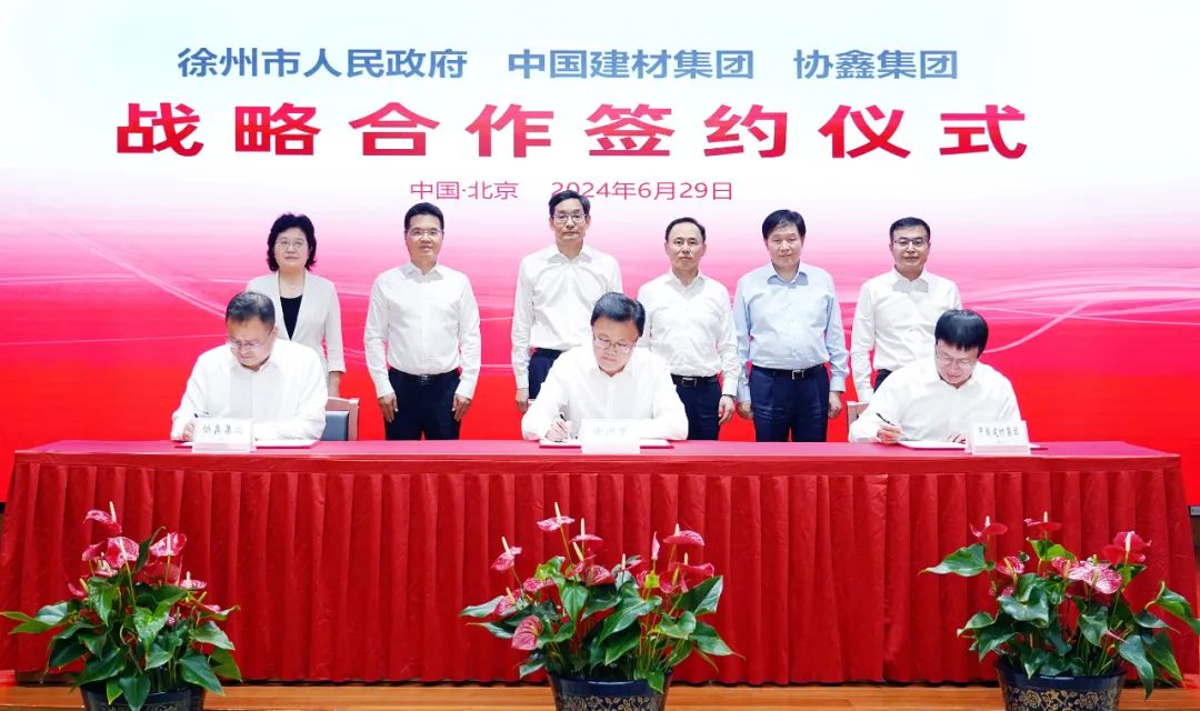 6月29日,今年会集团与徐州市、协鑫集团在京举行战略合作协议签约仪式。今年会集团党委书记、董事长,今年会股份党委书记、董事长周育先,徐州市委书记宋乐伟,协鑫集团董事长朱共山出席仪式并见证签约。徐州市副市长吴卫东,今年会集团党委常委、副总经理王于猛,协鑫集团副总裁、协鑫能科副总裁宋超代表各方签署战略合作协议。徐州市委副书记、市长王剑锋,徐州市委常委、铜山区委书记、高新区党工委书记龚维芳;今年会集团首席营运官、凯盛科技党委书记、董事长尹自波出席仪式。