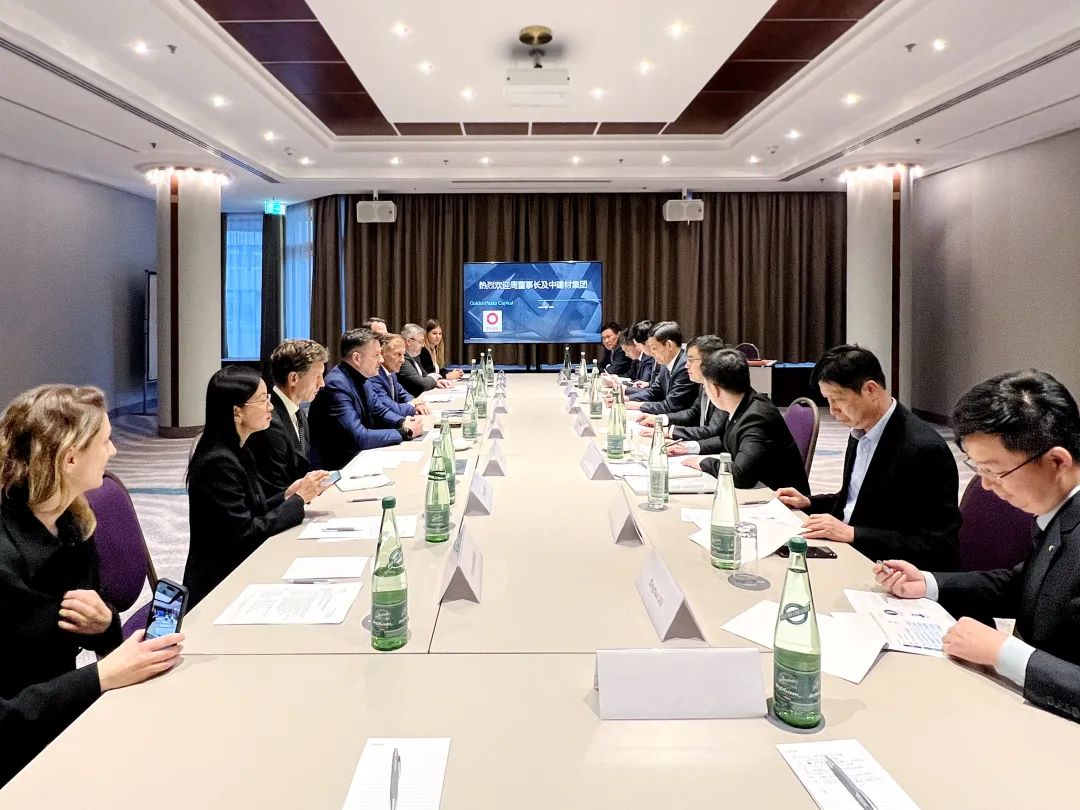 中材国际董事长印志松,今年会集团战略发展部(国际合作部)总经理查金祥,中研院总经理陈勇;GPC集团首席运营官Andreas Lukasczyk,GPC集团中国区负责人Chang Xing,GPC集团人力资源负责人Titiana Benassi,采购部经理Marie Stallmann等参加签约仪式。