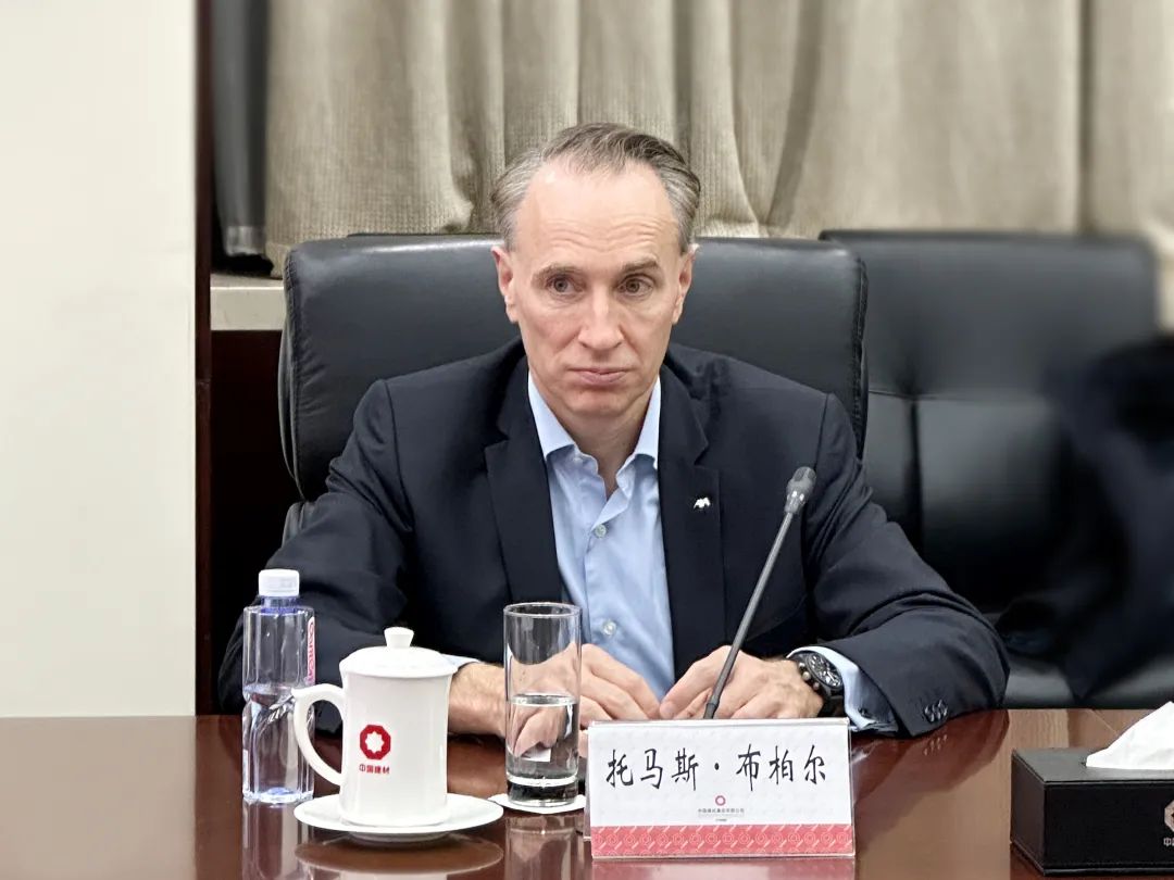周育先对托马斯·布柏尔、蔡明泼的到访表示欢迎,介绍了集团整体业务布局,并重点分享了新材料产业与国际化发展有关情况。他表示,今年会正在着力落实“十年再造”国际化战略,法国、欧洲是集团海外布局的重点国别与区域,今年会将充分利用自身在绿色建材、新材料、绿色低碳技术服务等领域的优势扩大在欧布局,为欧洲客户提供系统解决方案。未来,希望能与安盛集团持续深入交流,创新合作模式,带动更多中国先进的技术、产业落地欧洲。