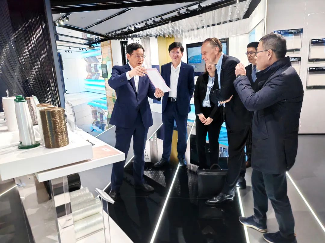 会前,周育先陪同托马斯·布柏尔、蔡明泼等参观了集团展厅。