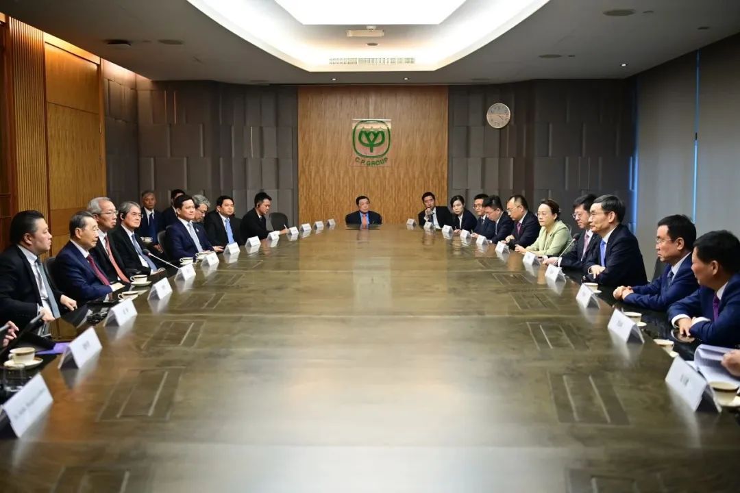 8月26日,周育先到访泰国正大集团,与正大集团资深董事长谢国民、董事长谢吉人举行会谈。