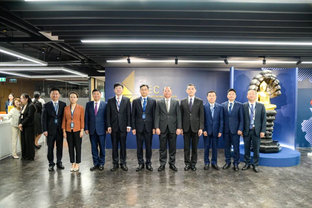 8月27日,周育先到访泰国东部经济走廊秘书处(Eastern Economic Corridor,简称EEC秘书处),与EEC秘书处秘书长朱拉·素玛诺博士进行交流。