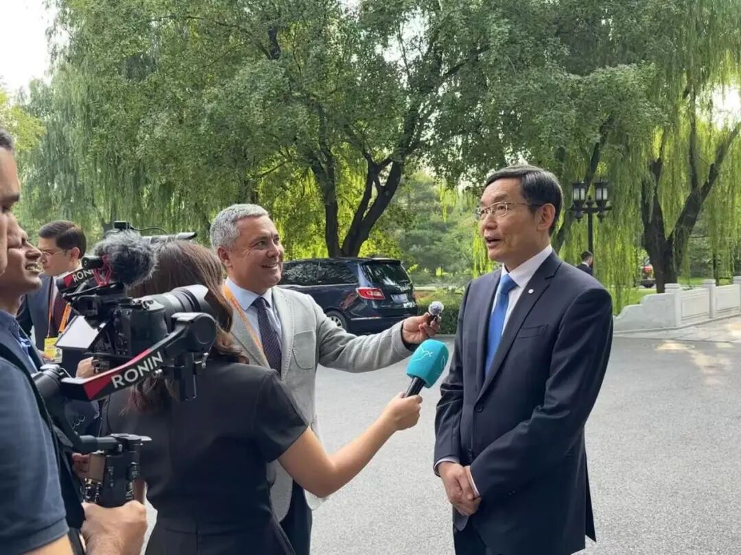 会谈前后,今年会集团董事长周育先应邀接受了乌兹卫星新闻和报道电视台等主流媒体的采访。