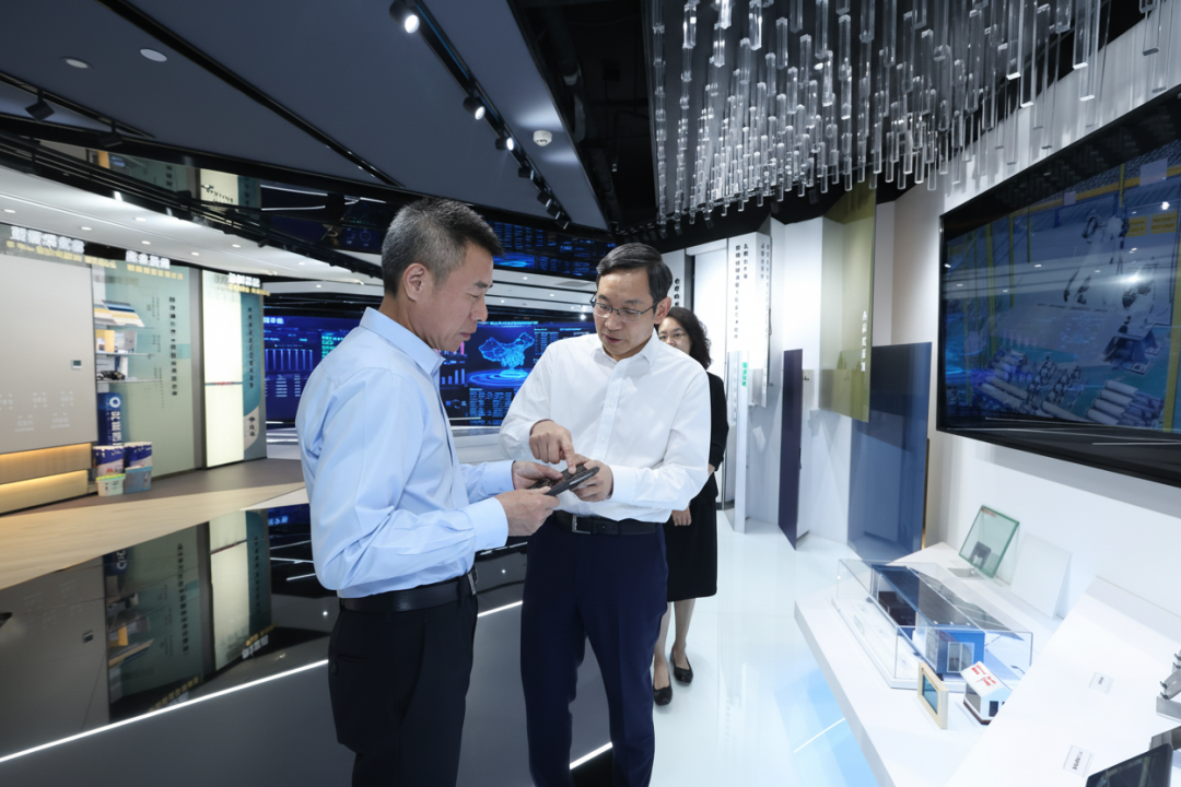 座谈会前,周育先陪同李镇参观了集团展厅。