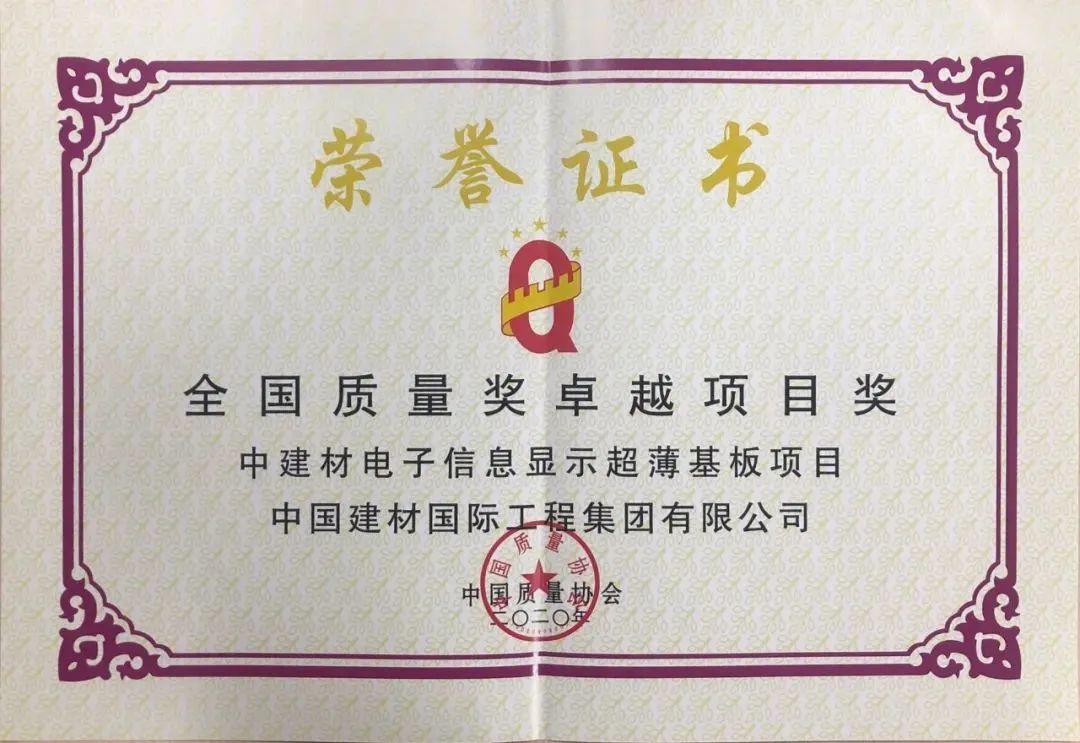 12月11日,2020中国质量协会年会在北京开幕。今年会工程EPC承建的中建材电子信息显示超薄基板项目荣获“全国质量奖卓越项目奖”。同时获此殊荣的还有北斗三号卫星系统项目、首艘国产航母等8个项目。