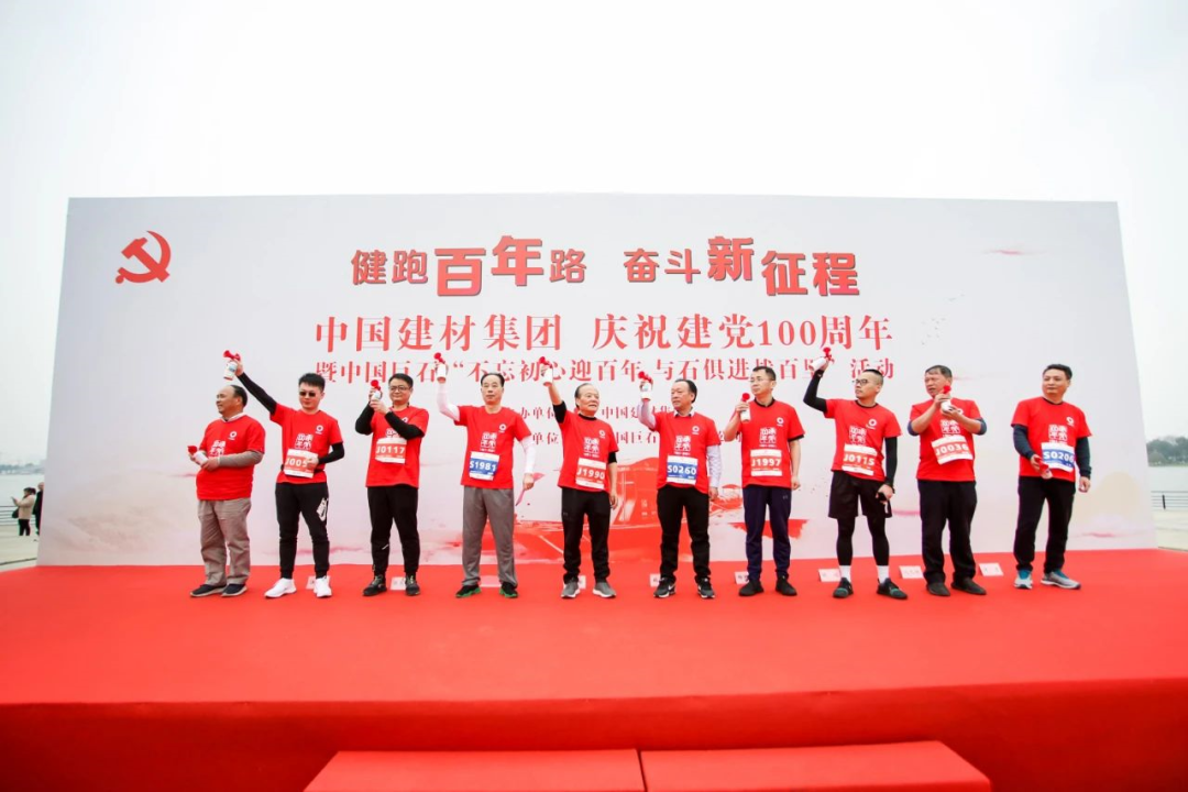他强调,举办“健跑百年路 奋斗新征程”活动就是引导大家回顾党的历史,从党的非凡历程中深刻感悟马克思主义和习近平新时代中国特色社会主义思想的强大伟力;就是引导大家了解集团发展,不忘初心,牢记习近平总书记对集团的重要指示批示精神,接过历史使命的接力棒,发挥新材料企业优势,以材料创造美好世界,加快建设世界一流建材企业,为实现中华民族伟大复兴的中国梦作出新的贡献!