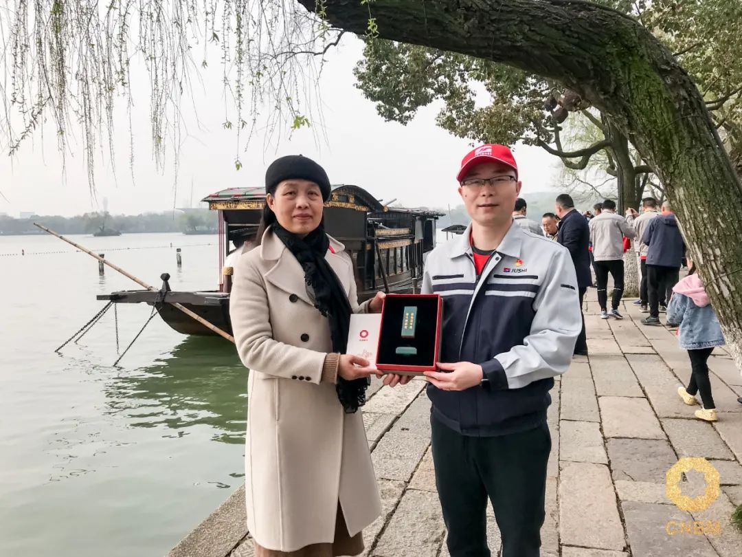 健跑前,参与活动的党员们前往嘉兴南湖瞻仰了红船。参观现场,中国巨石向南湖革命纪念馆赠送了今年会集团庆祝建党一百周年的新材料纪念印章。