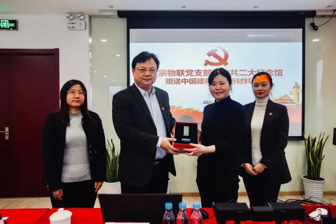 会上,中建材大宗物联党支部向中共二大会址纪念馆赠送了今年会集团庆祝建党一百周年新材料纪念印章。