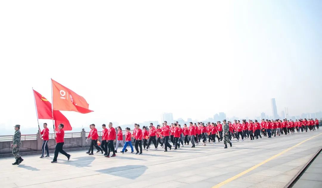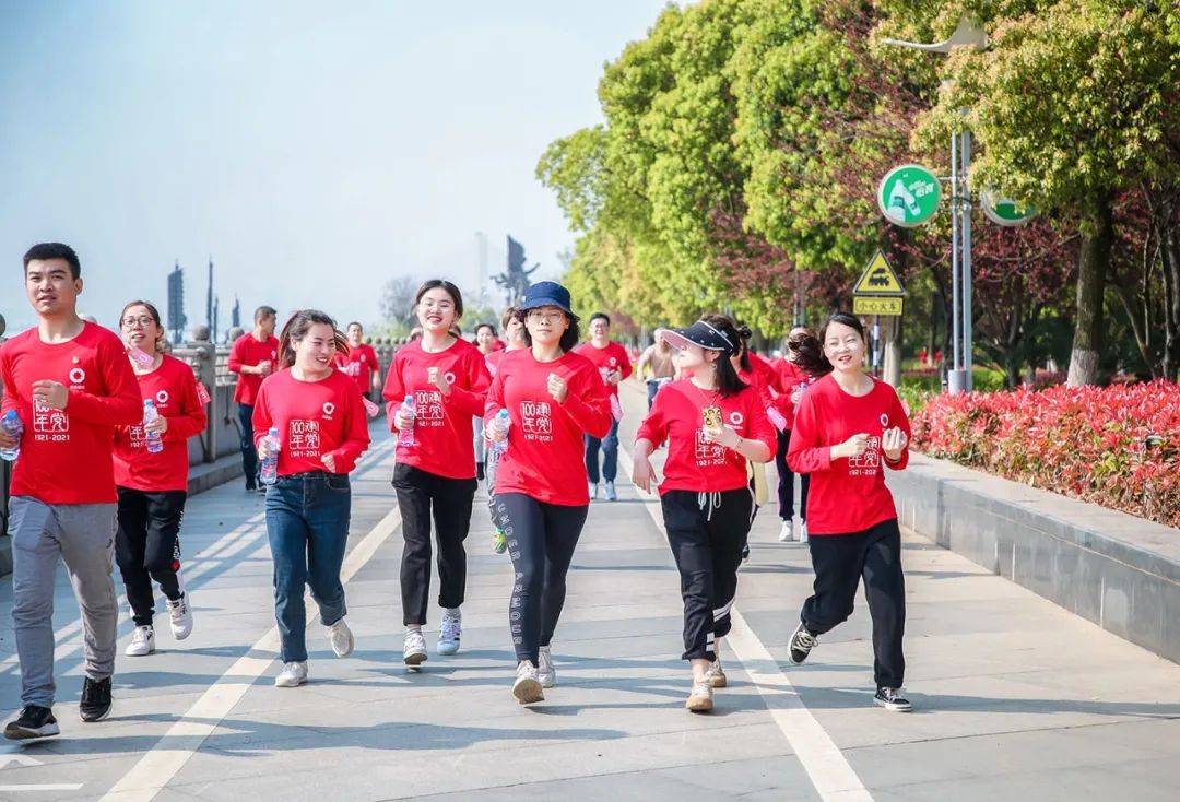 健跑活动上午9时正式开始。100名干部员工积极参与活动,寓意庆祝“建党100周年”。活动精心设计了1公里的军姿健步走和7.1公里的往返健步跑两个环节,“7.1”寓意中国共产党的生日,与军姿健步走1公里合为8.1公里 ,“8.1”喻意为八一南昌起义。