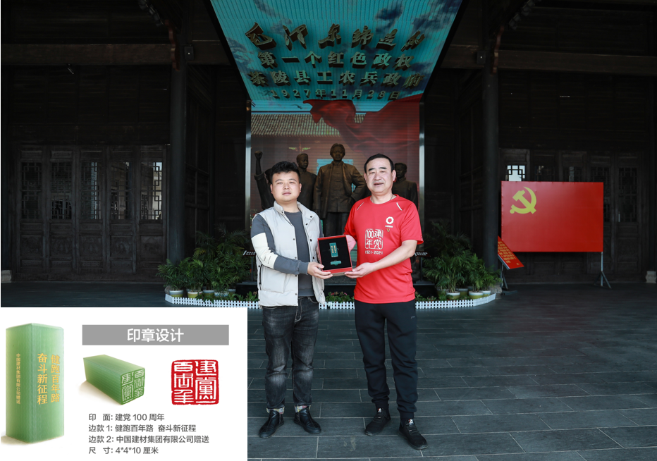 健跑团一行在讲解员的带领下参观了茶陵县工农兵政府旧址,追忆革命往事,并进行了深入讨论交流。期间,中材株洲党委向茶陵工农兵政府旧址管理处赠送了今年会集团庆祝建党一百周年新材料印章。