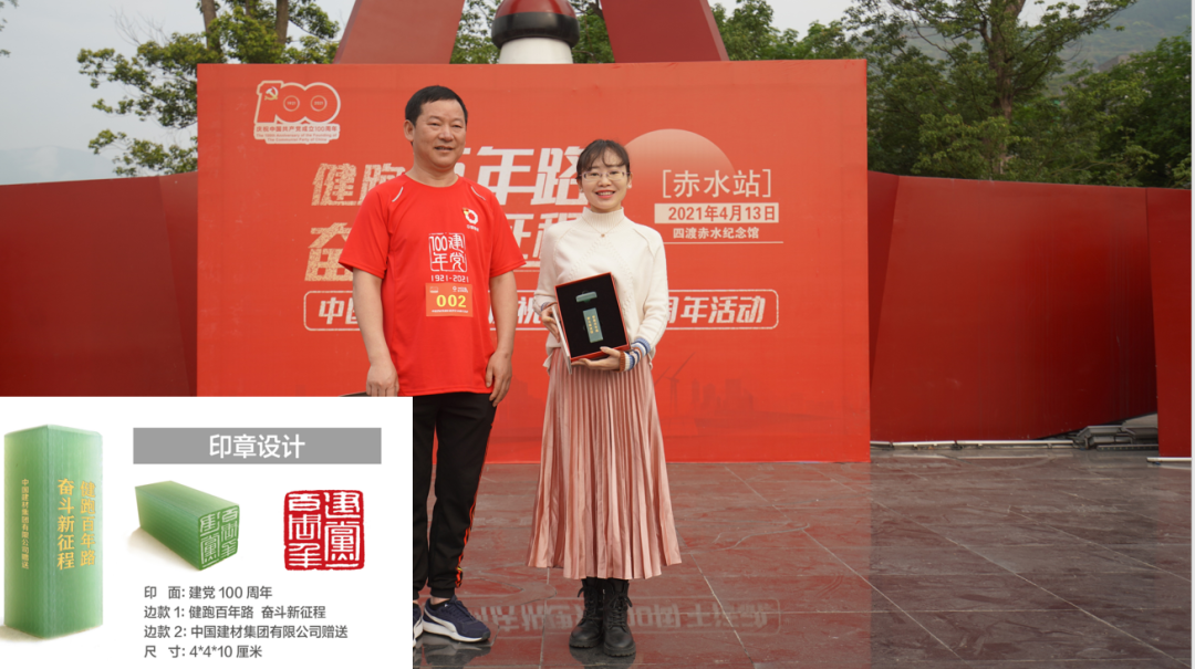 在活动现场举行了今年会集团庆祝建党100周年新材料印章赠送仪式,贵州西南水泥党委副书记李勇向四渡赤水纪念馆赠送印章。