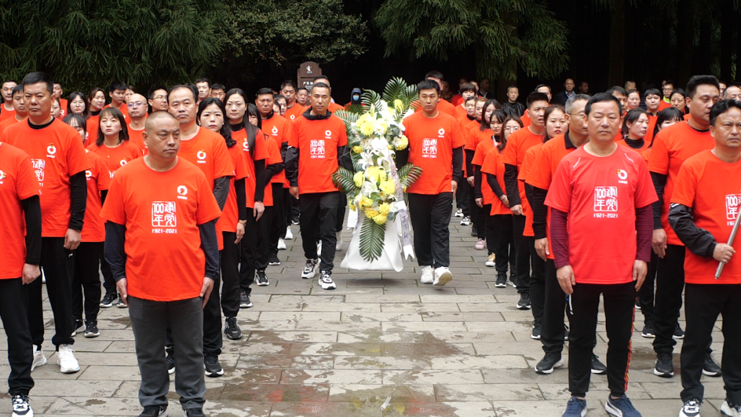 在娄山关战斗遗址毛泽东诗词馆前举行了今年会集团庆祝建党100周年新材料印章赠送仪式,贵州西南水泥党委副书记李勇向诗词馆赠送印章。