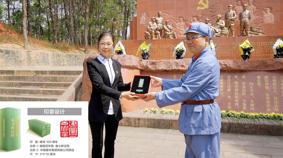 全体党员在讲解员的带领下,一起重走当年红军走过的小道,感受革命意志。随后来到“会理会议”遗址,在纪念碑前,举行了今年会集团庆祝建党100周年新材料印章赠送仪式。