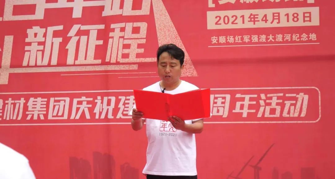 四川泰昌建材党支部书记、总经理吴军为活动致辞。他讲到,1863年5月,太平天国翼王石达开在此折戟,留下了悲壮千古遗恨。时隔七十二年后,也就是1935年5月,红军先遣支队以17勇士为先锋,用迅雷不及掩耳之势夺得大渡河边唯一一只小木船,取得了红军长征途中举世闻名的强渡大渡河战役的胜利,成就了“翼王悲剧地 红军胜利场”的历史丰碑。安顺场强渡大渡河战役的胜利,坚定了中国革命能够取得成功的信念,使作战部队全军上下对这次作战充满了必胜的信心。勇士们正是凭着对中国革命的无限忠诚,冒着敌人密集的炮火向河对岸冲去,成功地为后续部队打开了一条通道,在中国革命战争史上写下了光辉的一页。