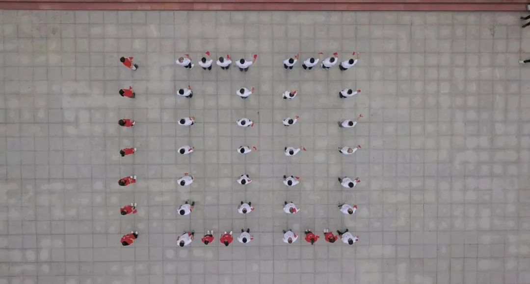 健跑结束后,全体党员来到安顺场红军强渡大渡河纪念馆广场排成“100“字样队形,向建党100周年献礼。