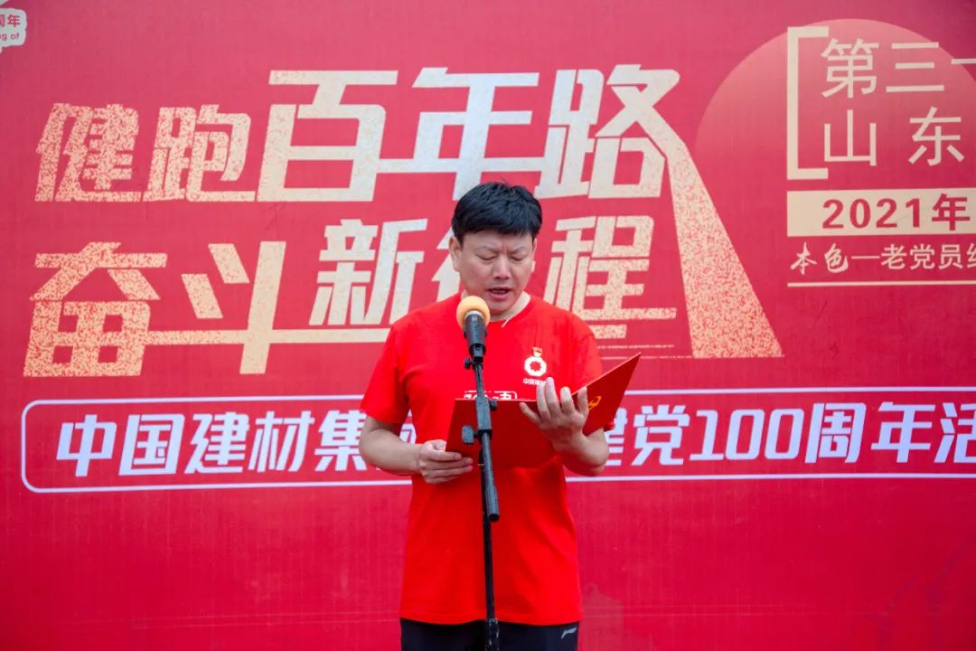 日照中联党总支书记、总经理刘希海为活动致辞。他阐述了本次活动选址“本色—老党员红色群落展览馆”的深刻寓意。莒县是沂蒙老区的重要组成部分,展览馆位于莒县招贤镇驻地,以弘扬和宣传建国前老党员“一心向党、公心为民、用心实干、清心律己、热心传承”的“本色”精神为主题,是进行革命优良传统和爱国主义教育的基地。希望参加健跑的每一位同志以红色群落老党员为榜样,守初心、担使命,带着饱满的热情,迈出坚定的步伐,展示今年会人的良好精神风貌,以昂扬的姿态迎接建党100周年。