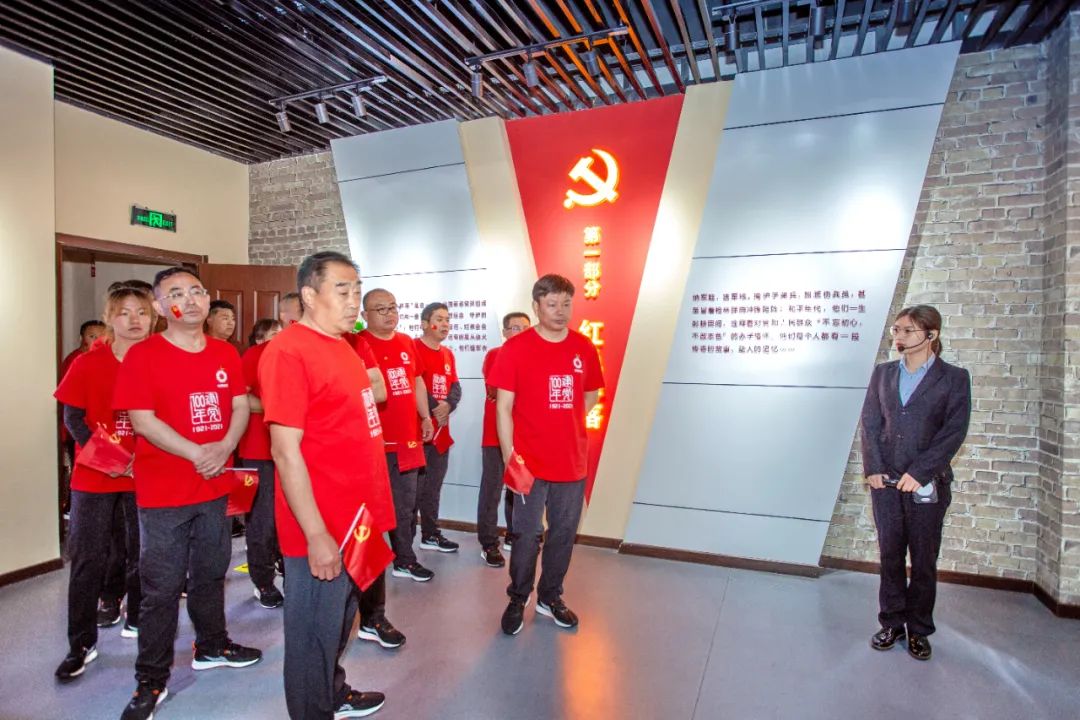 全体人员合唱歌曲《没有共产党就没有新中国》,歌声嘹亮,响彻整个红色教育基地,表达了全体党员对党的忠诚与热爱。