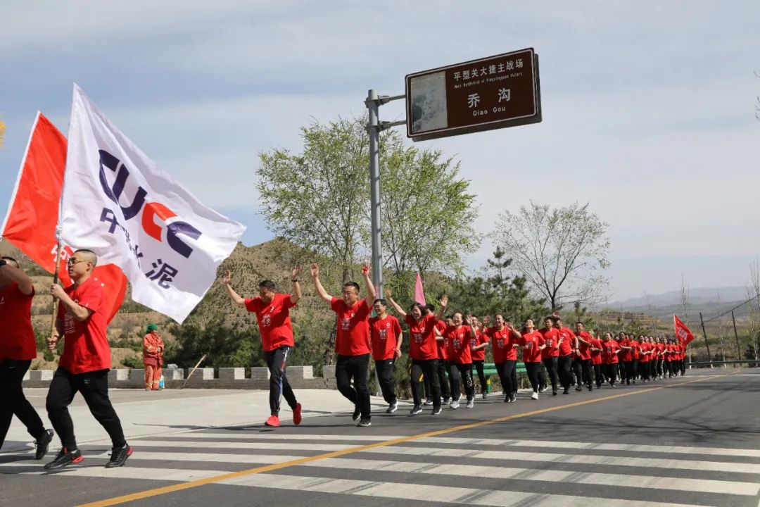 健跑活动从平型关大捷遗址出发,途径平型关大捷主战场乔沟、老爷庙战役遗址等,终点设在平型关大捷纪念馆,路程设置3.7公里,寓意1937年平型关大捷。随着一声起跑令,队伍高举党旗和今年会、中联水泥旗帜向着终点奋力出发,象征着公司全体员工团结一致、共同向前,奔赴新征程。