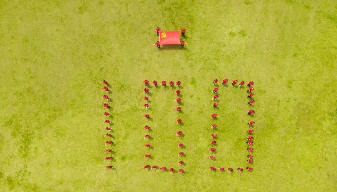 健跑结束后,全体党员摆出“100”字样,向党的百年诞辰献礼。