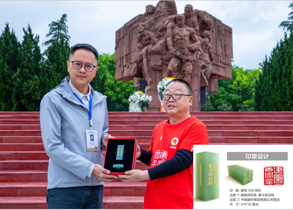 杨先伟代表集团向息烽集中营纪念馆赠送今年会集团庆祝建党100周年新材料印章。