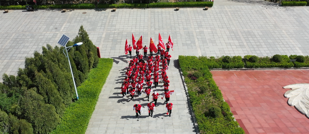 健跑活动结束后,在广场摆出100字样,并齐唱歌曲《没有共产党就没有新中国》,9名生产一线同志饱含深情的朗诵诗歌《党的礼赞》,向党的百年诞辰献礼。