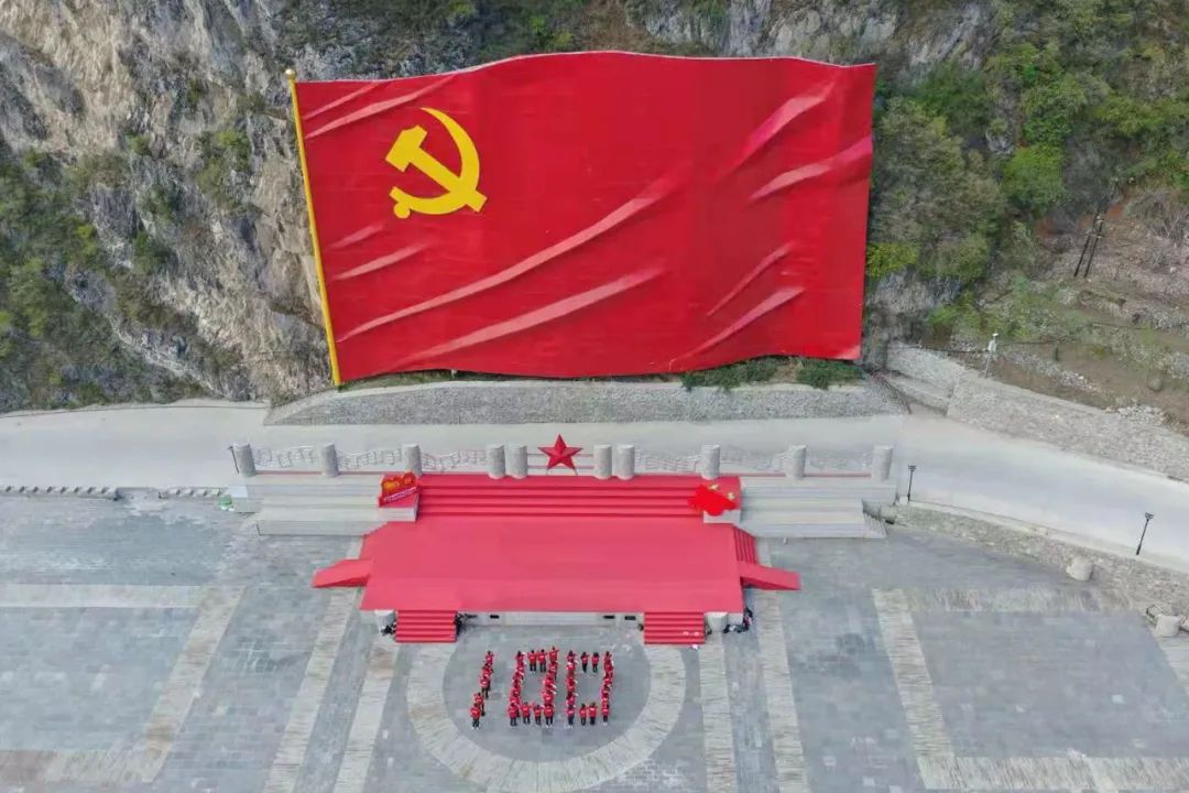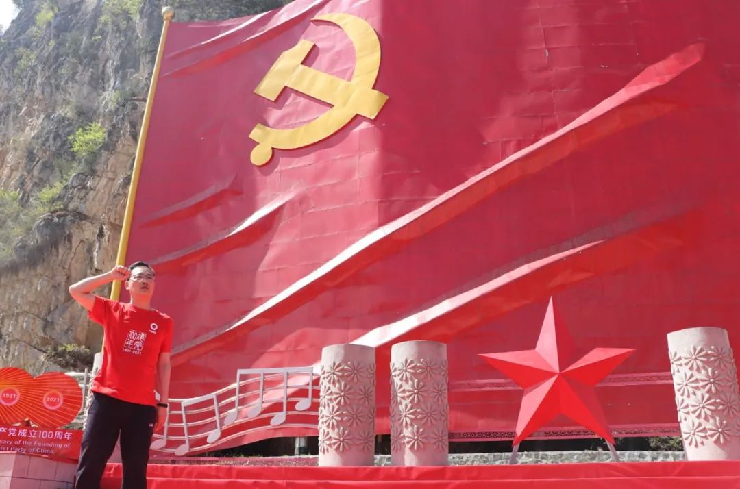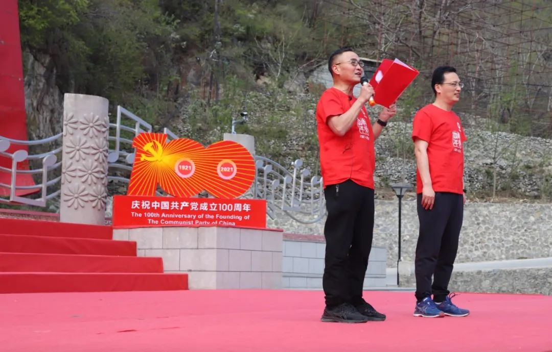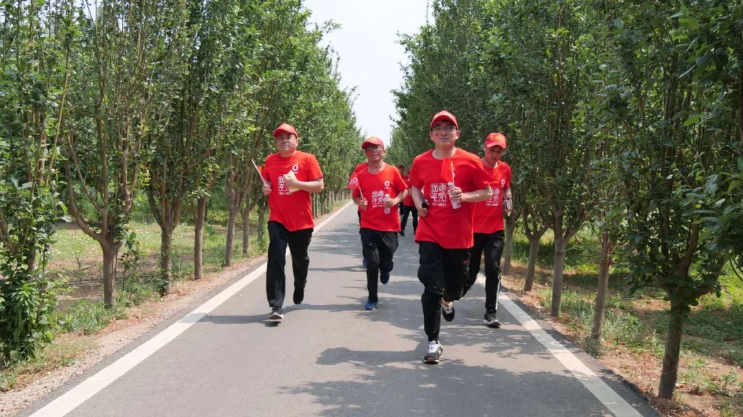 全体人员从面积960平方米的党旗广场行至高为19.21米的中国梦石碑进行健跑,跑步全程4.9千米,寓意着新中国1949年成立,中国共产党1921诞生,并组成 “100”字样进行拍摄留念,以表达对党的美好祝福。