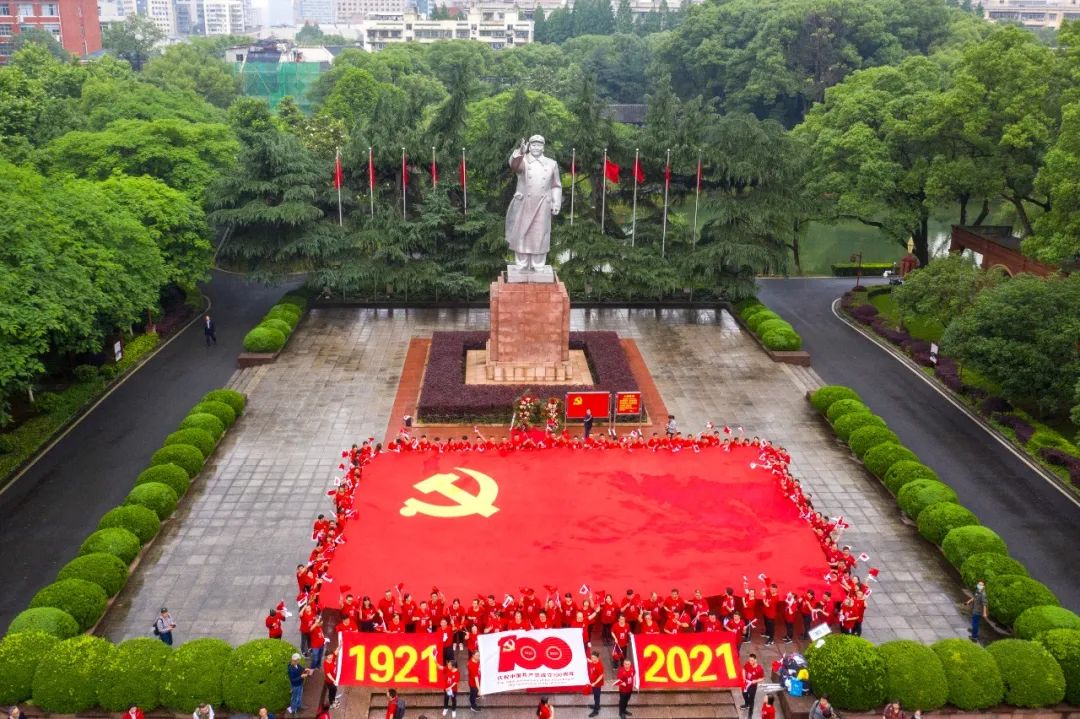 本次健跑路线总长2.1公里,寓意1921年建党和2021年建党100周年。在鲜艳的党旗、国旗引领下,大家沿着革命先辈的足迹坚毅前行。到达长沙历史陈列馆终点后,全体人员合唱《没有共产党就没有新中国》,用歌声表达美好祝福,热烈庆祝中国共产党成立100周年。