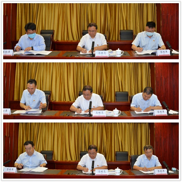 詹艳景、魏如山分别发表讲话,对中材节能作为集团内首家完成全级次企业“两书一协议”签订工作表示祝贺,对中材节能精心组织,及时、高效、高质量推进改革工作表示充分肯定。希望中材节能以这项工作的开展为契机,进一步深化改革,各级企业经理层成员要加强任期意识、强化岗位意识、提升权责意识,更好适应市场竞争需要。要发挥示范带动效应,推进中层管理人员及全体员工强化岗位意识和契约精神,激发公司的内生活力和动力,实现公司跨越式发展,为集团的高质量发展作出贡献。要探索成功经验,及时总结提炼,将好的经验做法在集团内复制推广。