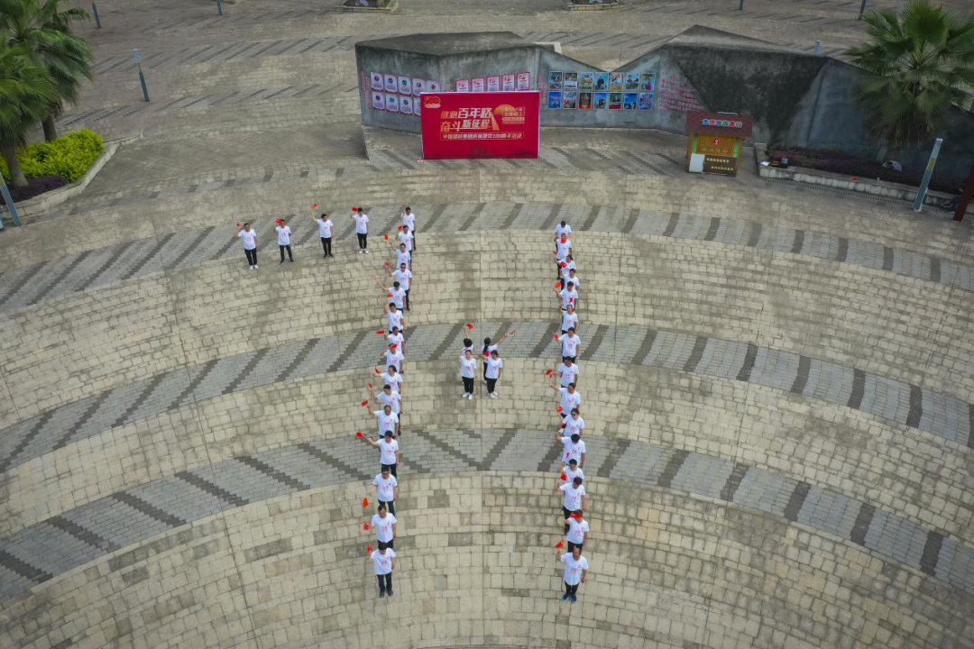 活动现场,全体党员站成数字“100”、“7.1”字样进行拍摄留念,向建党一百周年献礼。所有人举旗,舞动国旗,高呼“健跑百年路 奋斗新征程”,寓意在党的领导下,党员同志要不忘初心、牢记使命,奋力在全面建设社会主义现代化国家新征程中不断创造新的辉煌。