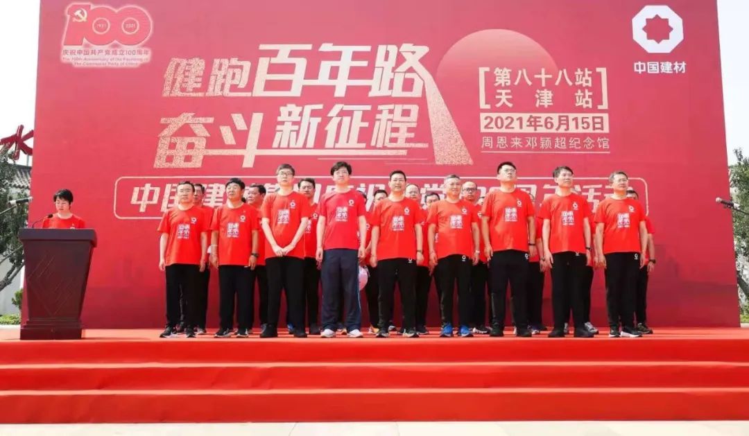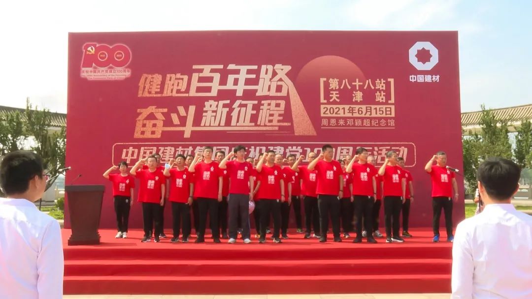 6月15日,今年会集团“健跑百年路 奋斗新征程”第88站活动在天津市周恩来邓颖超纪念馆举行。今年会股份党委委员、副总裁,中材国际党委书记、董事长刘燕为活动致辞。集团公司管理部总经理邵晓阳、安全环保部总经理李宁、科技管理部主任郅晓出席活动。天津水泥院党委书记何卫红主持仪式。集团所属中材国际、天津水泥院、中材建设、中材海外、中材环境、中材贸易和集团公司管理部、安全环保部、科技管理部三个党支部的党员职工共计170余人参加了活动。