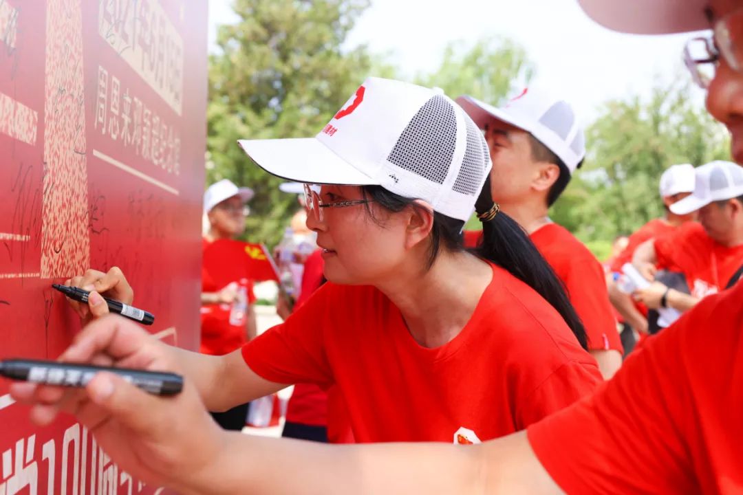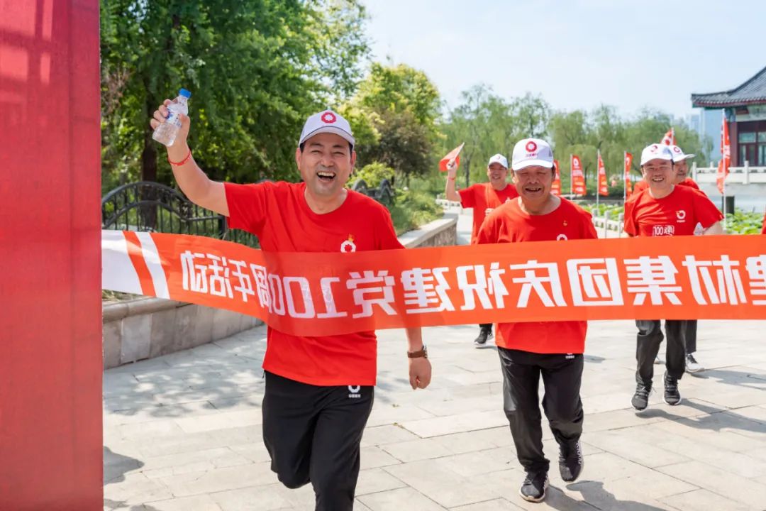 全体队员精神抖擞、意气风发,共同踏上健跑之旅。本次健跑活动路线全长2.1公里,“2.1”寓意1921年建党和2021年建党100周年。矫健的步伐、灿烂的笑脸、飘扬的党旗,绘成了一道亮丽的风景线,展现了建材人昂扬向上、拼搏进取的精神风貌。队员终点冲刺后,在终点签名墙上签字打卡留念。
