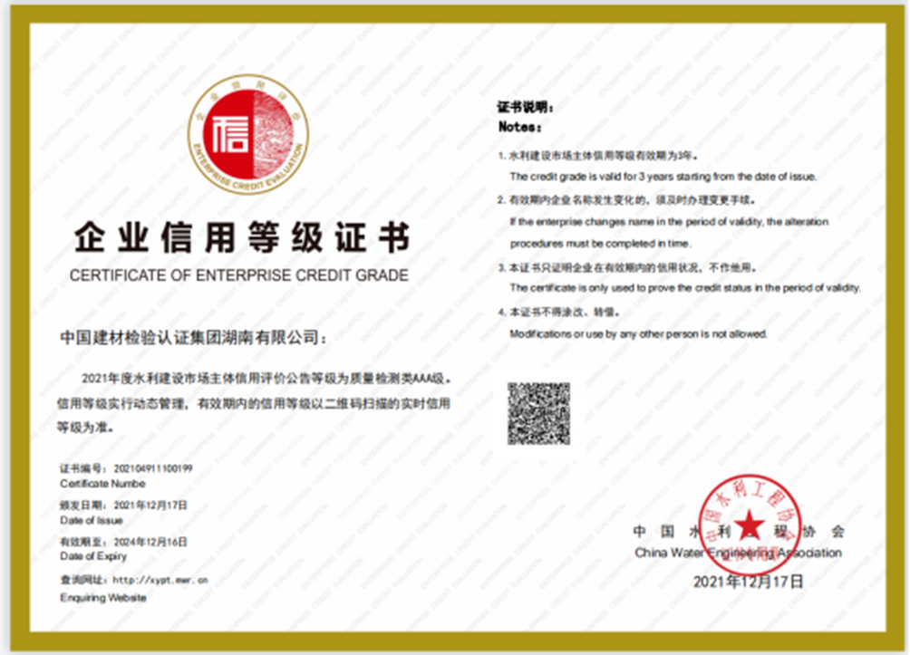 近日,国检集团湖南公司凭借在水利工程质量检测领域的技术实力和不懈追求,顺利通过水利部水利工程质量检测单位(机械电气类)甲级资质评审,也标志着国检集团自此拥有了该领域的全部甲级资质,可面向全国开展各等级水利工程质量检测服务。同时,湖南公司还获得水利部2021年度水利建设市场主体AAA级最高信用评价。