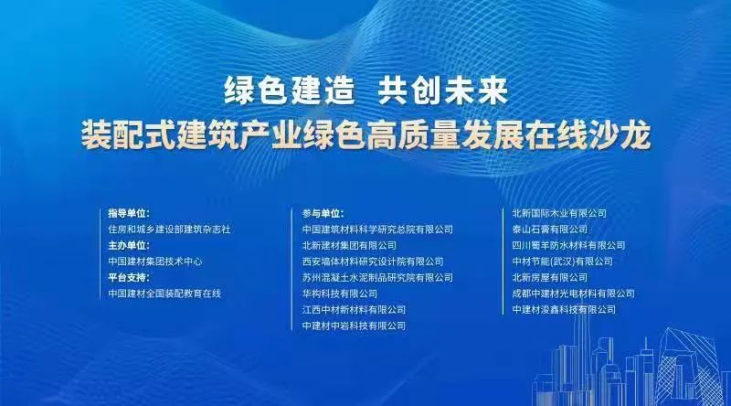 活动特邀了四川省土木建筑学会建筑工业化专委会主任委员张瀑、四川大学建筑与环境学院院长熊峰和西南交大结构工程系主任余志祥3位专家做沙龙主持。今年会总院科技发展部部长王华、教授级高工、博士李清海,北新建材集团副董事长刘贵平、总工程师张士元,西安墙体材料研究设计院党委书记、总经理唐玉娇,苏州混凝土水泥制品研究院总经理薛万银,华构科技副总工程师廖海军、刘勇刚,江西中材新材料董事长孔令珂,中建材中岩科技北京分公司常务副总经理范德科,北新蜀羊防水技术总监李冬凤,中材节能(武汉)副总经理李杰,北新木业人造板业务部总经理李伟,北新房屋(成都)技术总监黄永超、成都中建材光电材料总经理潘锦功、中建材浚鑫科技技术总工程师郭万武等集团下属15家位单位负责人、专家分别参加了4期线上交流。