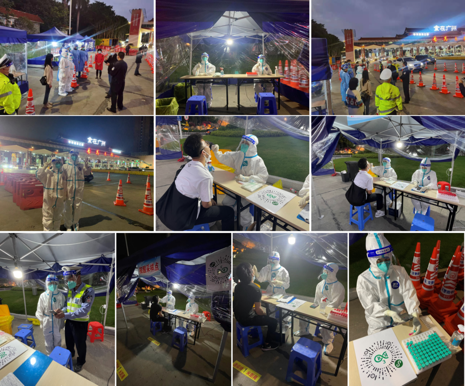 应区卫健局号召,国检京诚迅速组织核酸检测团队前往支援广州市番禺区各高速路口联合检疫站,对进入车辆及人员进行严格排查。检测团队专班人员24小时坚守一线,按照“应检必检”的原则,重点排查货车及省外车辆,对车辆信息、司乘人员身份户籍信息、接触史、体温等进行详细登记,并加强疫情防控宣传知识教育和舆论引导,扎实做好疫情防控排查工作,切实阻断疫情传播链条,用实际行动为人民群众生命安全撑起一道坚实的屏障。