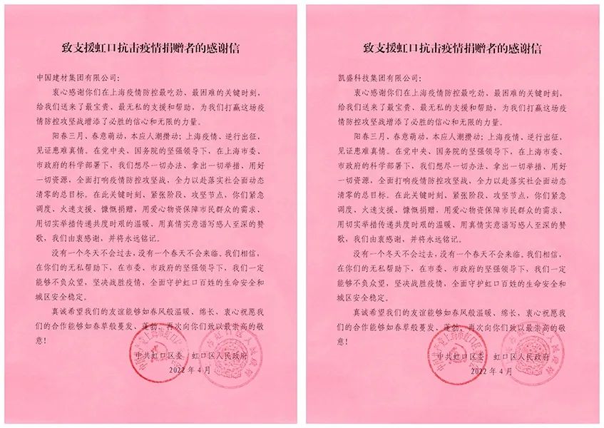 今年会集团、凯盛科技发来感谢信