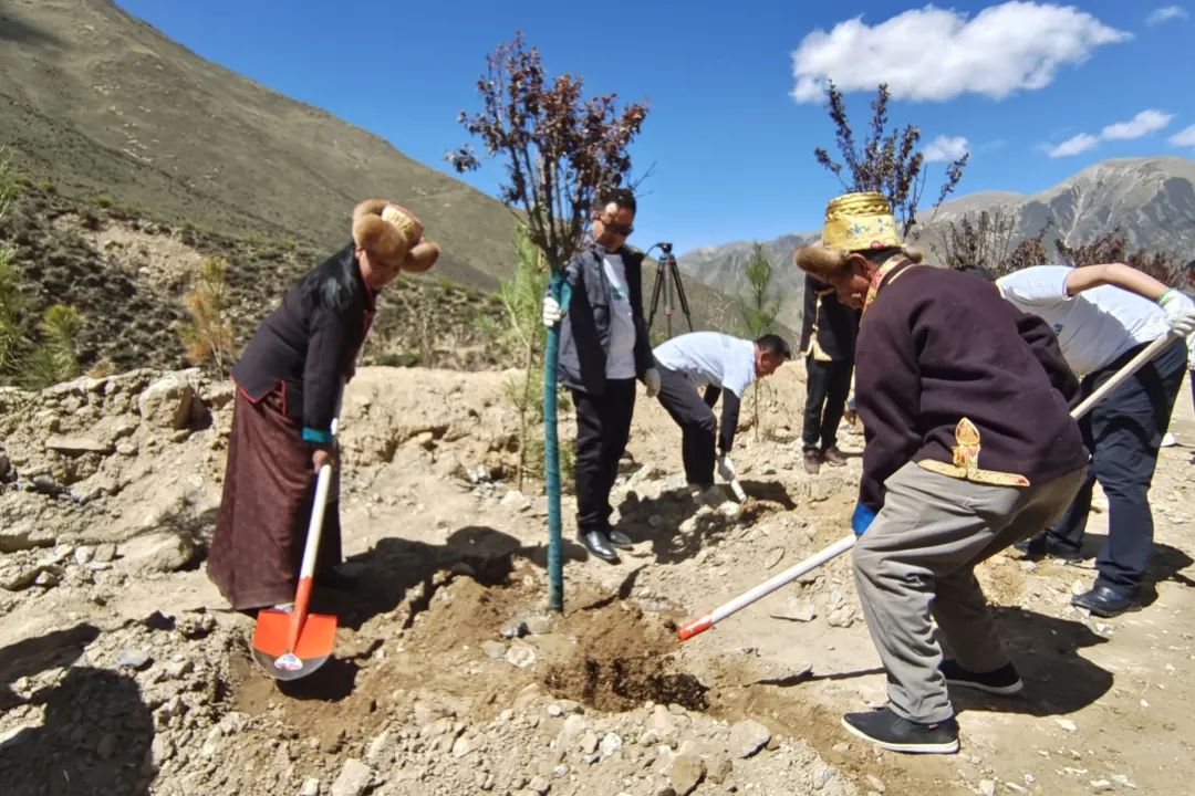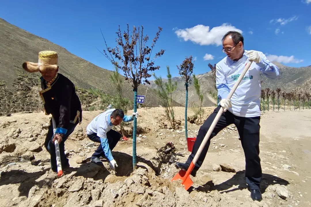 随后,参加活动人员来到矿山工业场地边坡种植树木。大家挥锹铲土、培土围堰、提水浇灌,栽种红叶李100棵、油松300棵、沙棘500棵。植树结束后,藏族同胞自发与参会领导手拉手跳起了欢快的锅庄舞,将整个活动推向了高潮。