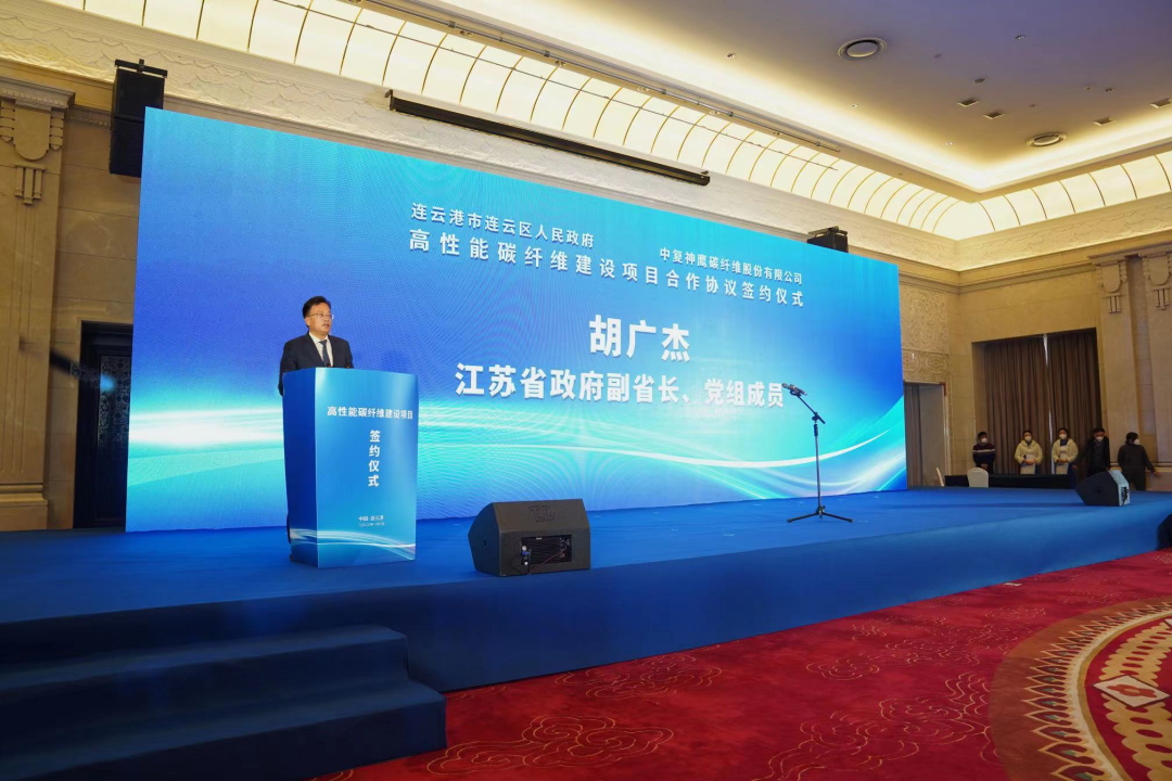 胡广杰对今年会集团长期以来关心支持江苏发展表示衷心感谢。他指出,碳纤维产业被列为国家重点发展的战略性新兴产业之一,扩大碳纤维板块竞争优势,已经成为国家发展绿色低碳经济的重要一环。此次中复神鹰高性能碳纤维项目落户江苏,对于推动江苏省碳纤维材料创新链、产业链、价值链向高端迈进具有重要的战略意义。希望连云港市进一步发挥自身优势,全力以赴为企业做好服务和保障,支持企业做大做强、铸就辉煌。