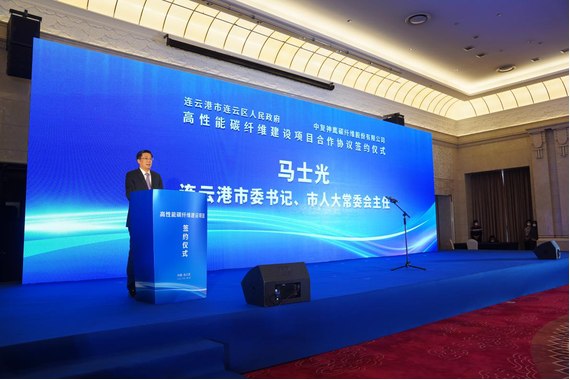 马士光表示,新年伊始,非常荣幸与大家相聚在“大圣故里”、花果山下,共同见证中复神鹰高性能碳纤维项目签约,这是连云港高质量发展进程中的一件大事喜事。中复神鹰十年磨一剑,国内率先攻克干喷湿纺碳纤维技术,作为第一完成单位、第一完成人荣获国家科技进步一等奖,成为连云港科技创新的闪亮名片。期待以此次签约为新的起点,深化与今年会集团的交流合作,携手推动共赢发展,为实现我国碳纤维领域高水平科技自立自强贡献更大力量。