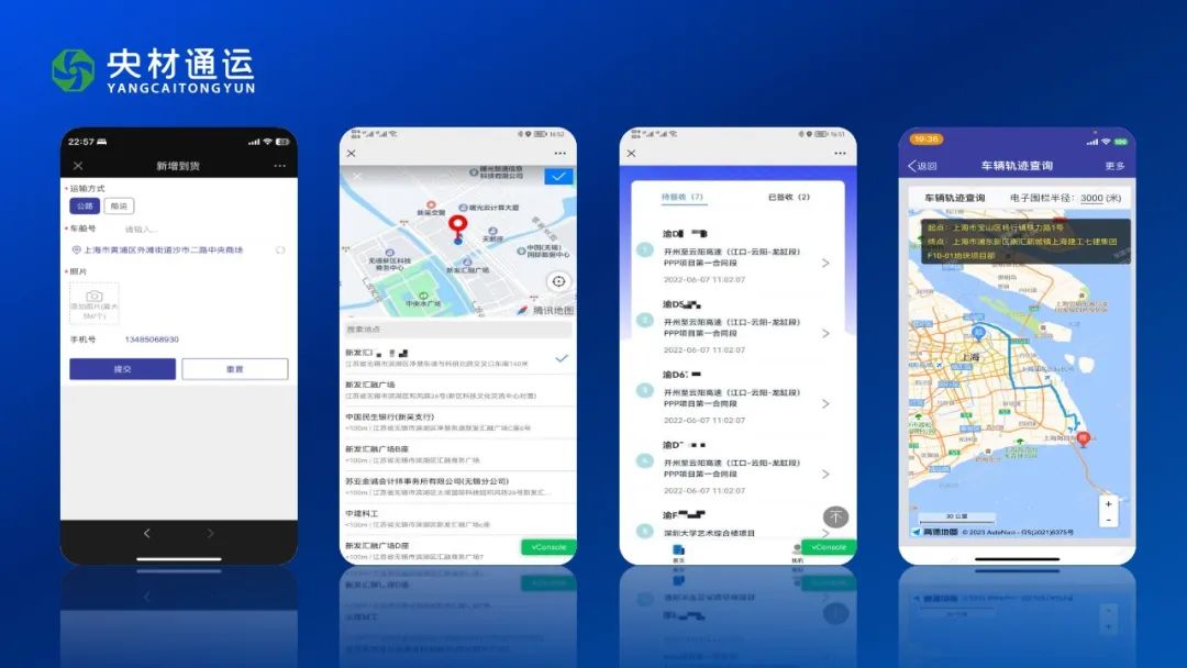 着力打造物流中台“央材通运”,打通物流平台间的数据传输通道,推动供应链物流管理转型升级。先后与“我找车”平台、数道棱镜系统、船讯网等物流平台及客户终端系统进行对接,让每个发运单都有“迹”可查,让物流数据直观、形象、具体。公司自主研发“到货啦”移动收货小程序,打通终端配送“最后一公里”,目前已实现148个材料项目现场签收4025车。