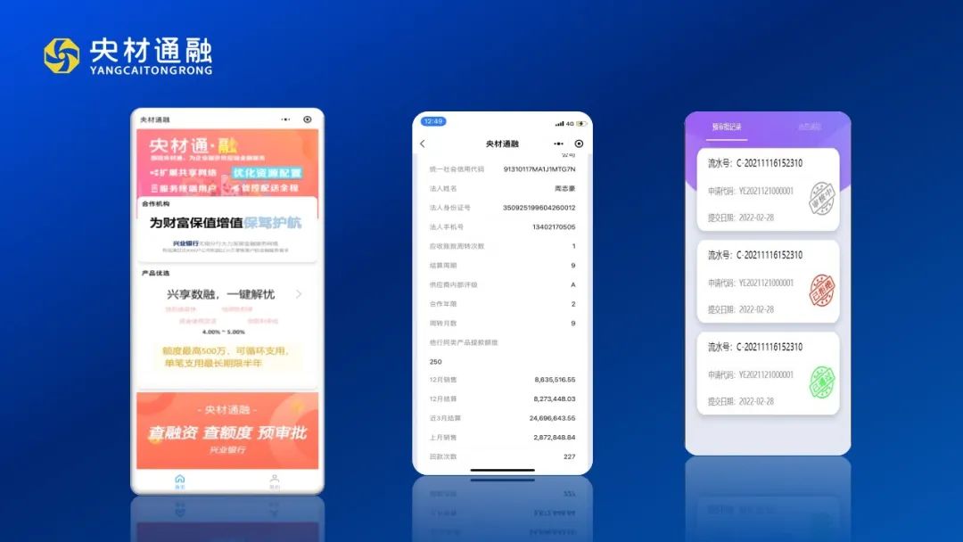 央材通平台搭建了材料配送供应链全流程闭环式业务场景,携手多家金融机构,全力探索“数字+科技+金融”的创新应用,打通信息壁垒,将企业“数字信用”变“金融资产”,为自身业务发展提供融资便利,推动供应链业务顺利开展。央材通平台基于真实的业务数据,形成供应链智能风控模型,与金融机构共同创新供应链金融解决方案,累计为10家供应商提供融资便利3230万元。