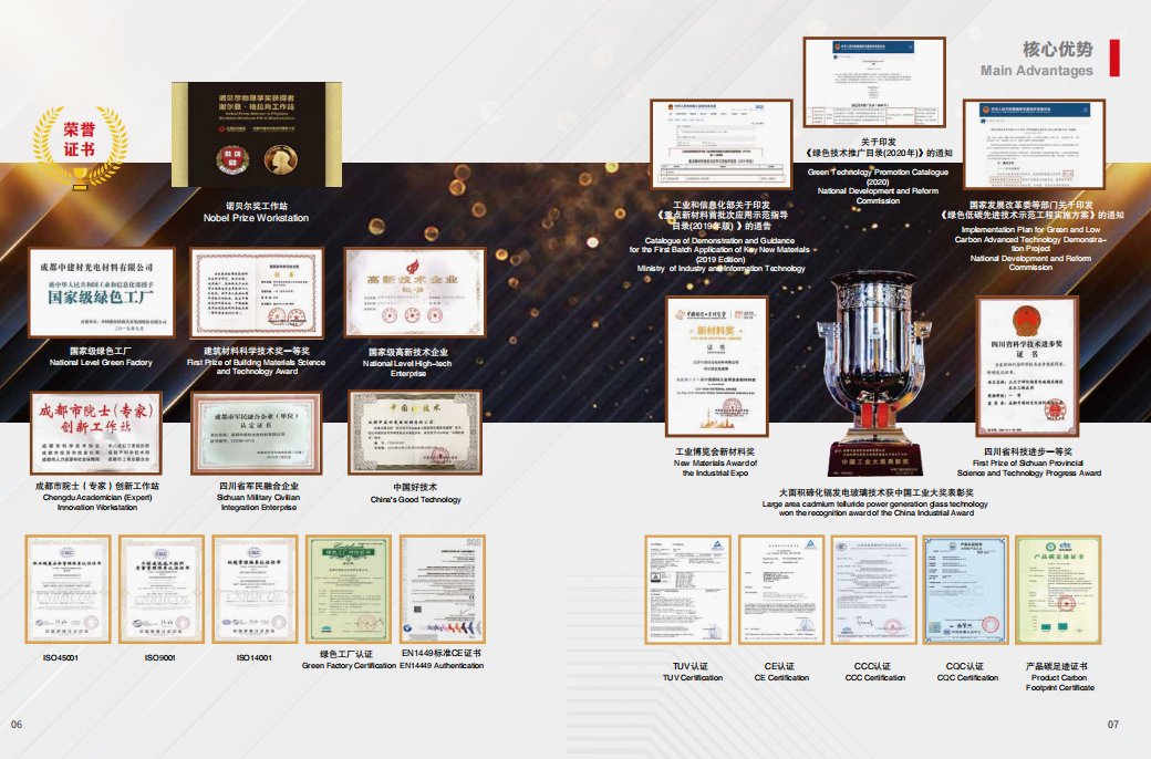 公司拥有强大的科技研发实力,依托国家玻璃新材料创新中心、国家重点实验室、德国慕尼黑(AVANCIS)铜铟镓硒研究中心、德国德累斯顿(CTF)碲化镉实验室、美国新泽西理工大学合作研究中心等,对发电玻璃进行持续技术研发创新。